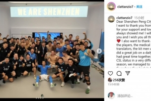 随后,拉坦齐奥在社媒发文:“亲爱的深圳新鹏城球迷们,我要由衷地感谢你们一直以来给予我的支持和厚爱!我永远不会忘记你们,并祝愿你们一切都好❤️。